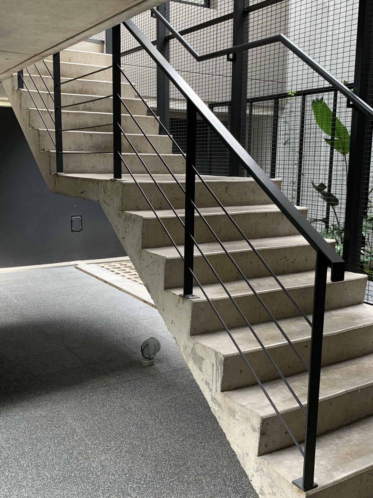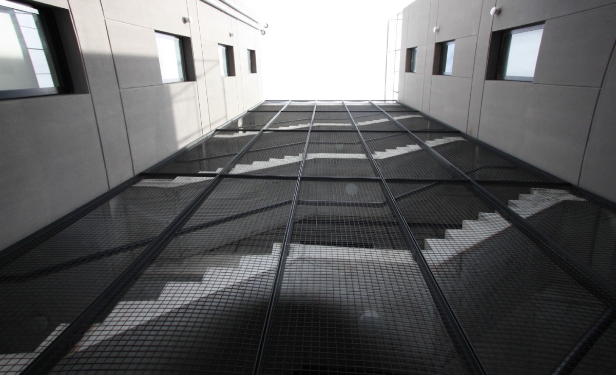 El retiro del frente y la malla metálica que hace de filtro de visuales y aporta seguridad, representan esta preocupación del proyecto por entablar un diálogo constructivo con el entorno.