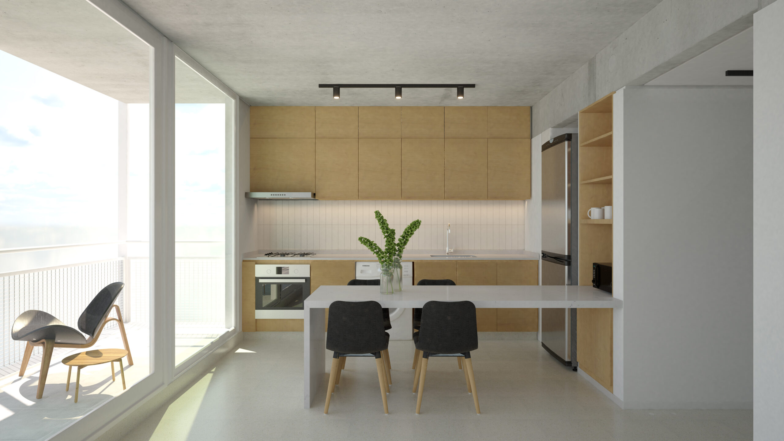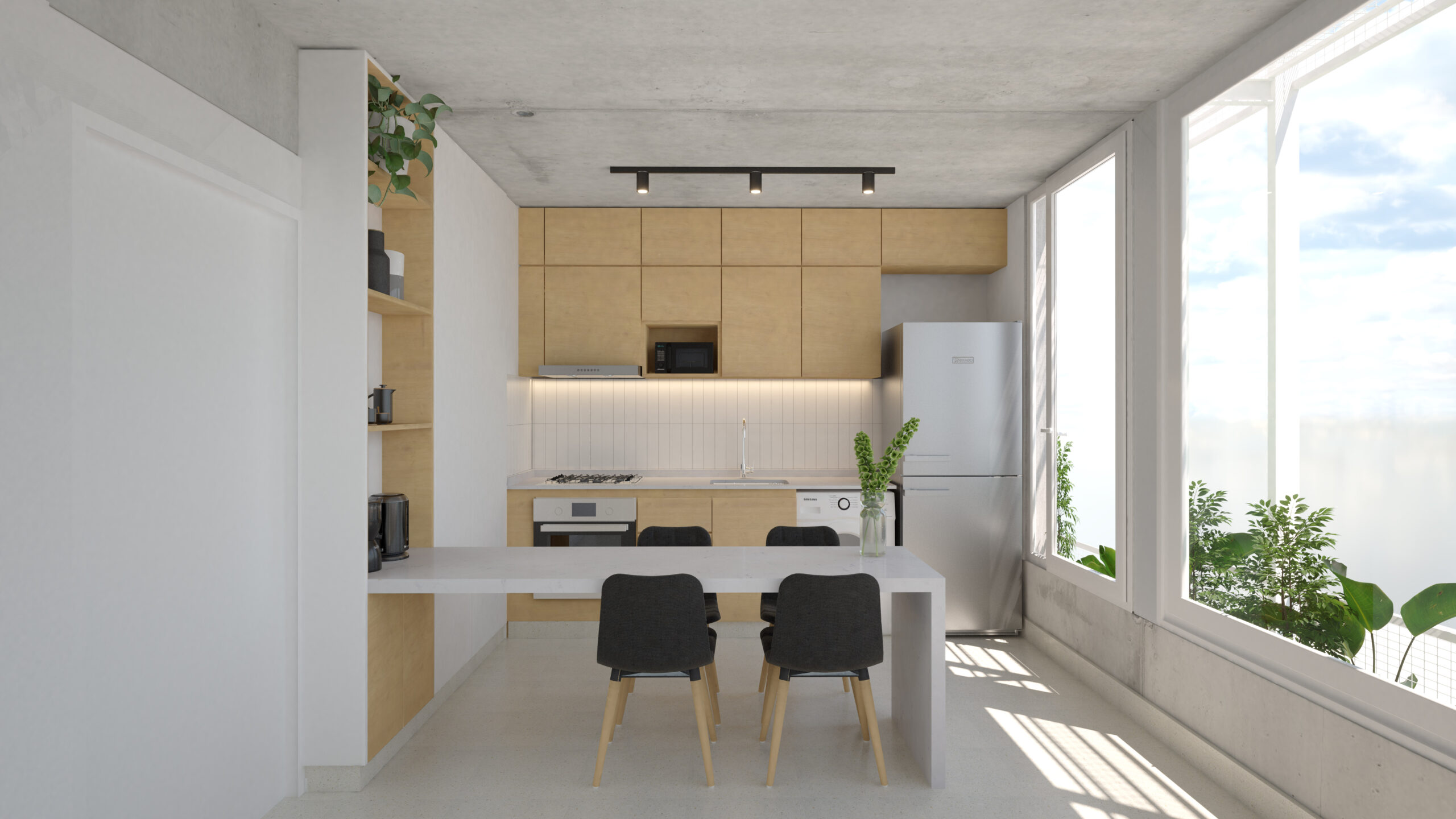 El edificio Zapiola 4030 posee 12 unidades pensadas como espacios únicos con divisiones funcionales que buscan la mejor perspectiva del Parque Saavedra. Sus grandes ventanales permiten una relación visual fluida con el exterior, al tiempo que sus balcones en voladizo funcionan como expansión del espacio social.